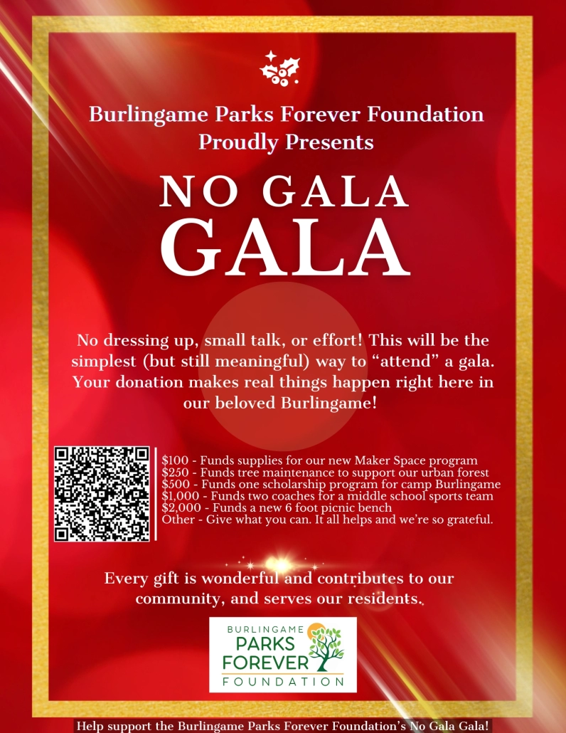 A contribution to the Burlingame Parks Forever Foundation will help subsidize the scholarships required for so many of our children to attend the wonderful classes and programs offered by our Parks and Recreation Department.